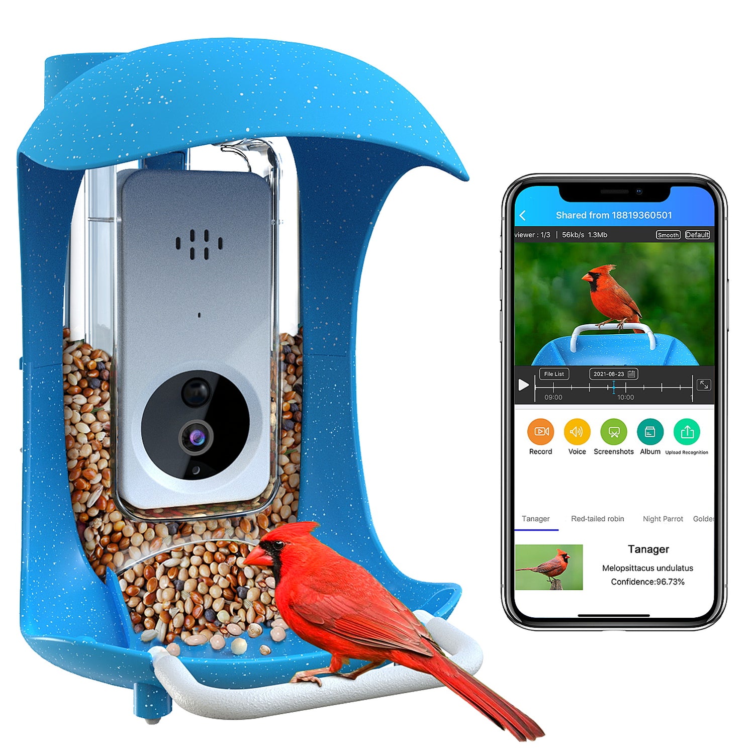 The smart bird feeder have 165 degree super wide angle allowing you to monitor the arriving birds during the day and night, and hear the sounds of the birds.